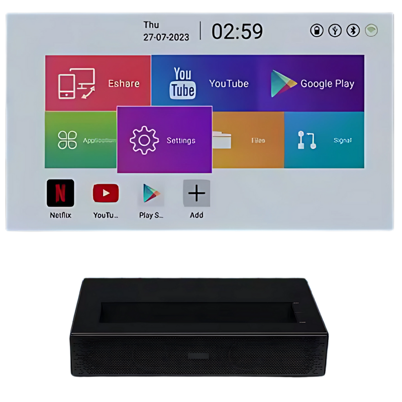 the thrylo D068 is an ultra-short throw laser projector that turns any wall into a 100″ 4K-ready theater — without the clutter.